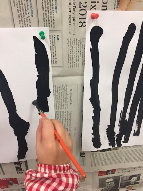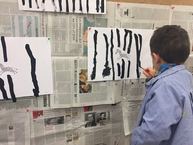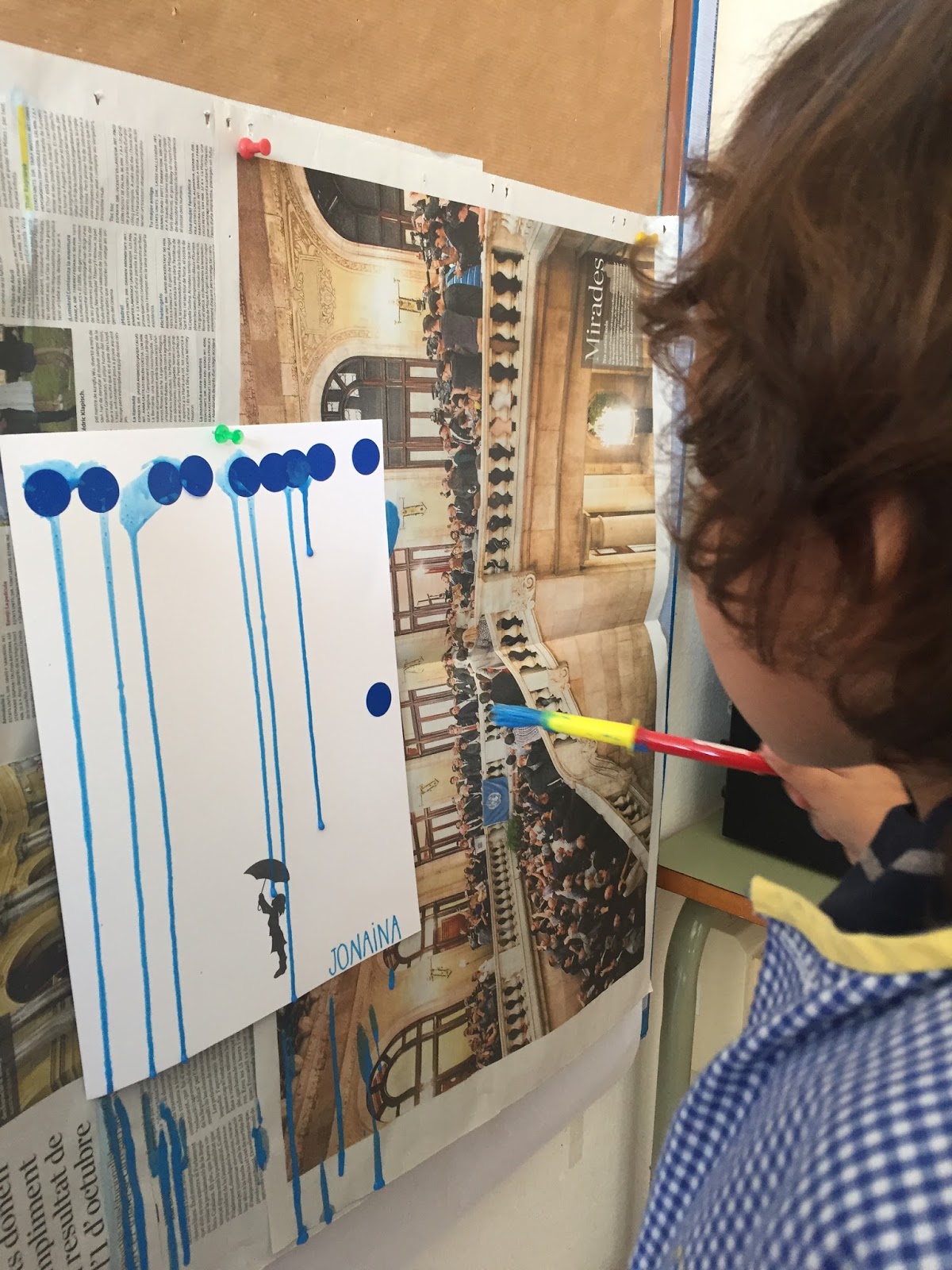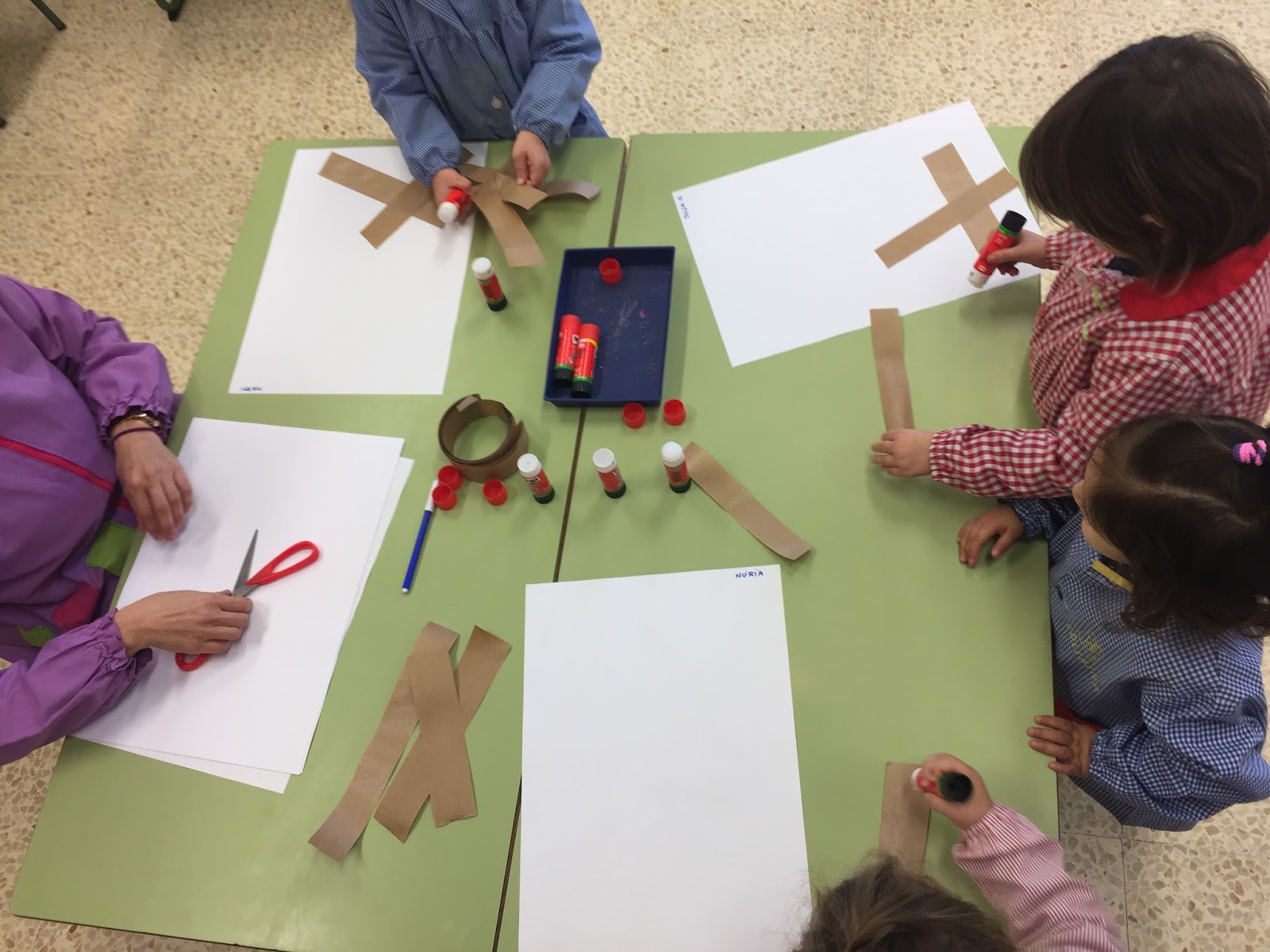 Com que pensam que a 3 anys, i sobretot a principi de curs, és una tasca important i necessària per començar a exercitar la pre escriptura i/o psicomotricitat fina, l'hem programat tant a una sessió setmanal (quan ve la mestra de suport) tant a tallers internivells on hi ha un taller de grafisme i els infants hi passen cada 5 setmanes.