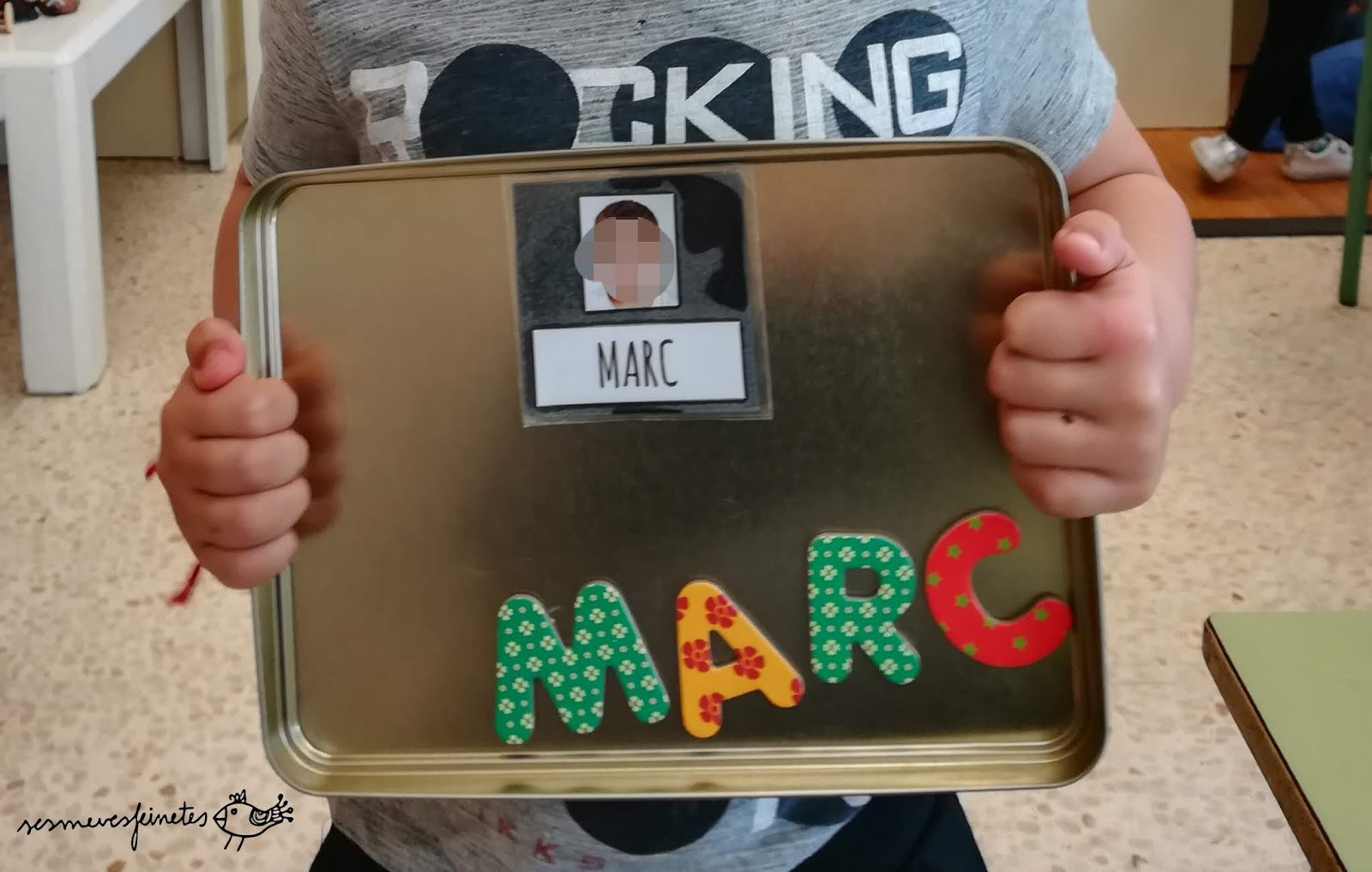 - De feina: tasca més dirigida per la mestra (portades, avaluacions, treball del nom, treball de nombres, etc.), mini-espai escriptura, mini-espai mates.