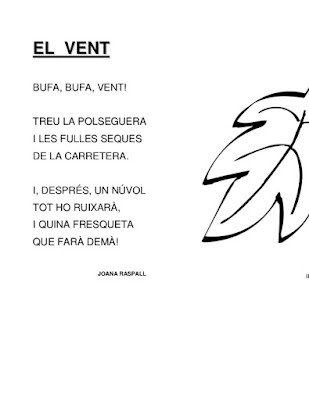 Adjunt una imatge del Poema que he vist a Internet (perquè es llegeix millor que a la meva foto), però no la vàrem emprar per res... Ni per pintar, ni per l'àlbum ni per res. Simplement escoltàrem na Joana Raspall.