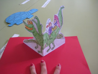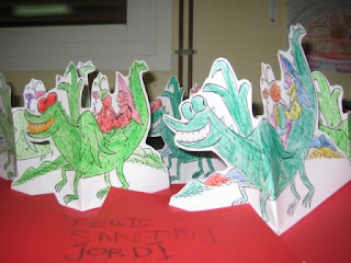 Així és com ens va quedar la postal de Sant Jordi que vàrem fer molt ràpidament ja que enguany no hi havia molt de temps per Sant Jordi. La idea està agafada d'un material de la Diputació de Barcelona que podeu trobar a sa pàgina principal d'aquest bloc.