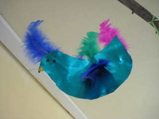 Aquests són els ocellets que han fet els de la classe de 5 anys, per penjar al passadís per la decoració de primavera d'enguany.