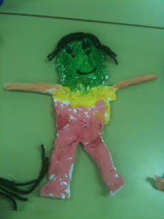 Fem un senyor que li creixeran els cabells. Amb una calça, serradís i llavors de herba per moixets (aquí a Formentera no es troba tot el que un vol, perquè la idea principal era fer-los amb gramma que és com a gespa) fem el cap d'un senyor que quan el reguem li creixeran els cabells. Ja han crescut alguns però no tots (ja penjaré alguna foto). La calça s'embolica amb un globus i el vàrem decorar amb ulls que es mouen i s'aferren, i el nas i boca amb un retolador permanent.